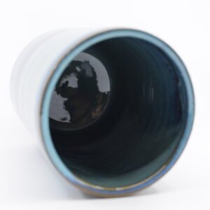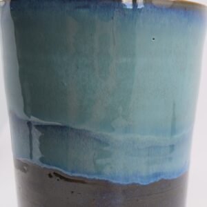Vase inspired by the colours of the sea. It is made of dark grey clay, at the potter’s wheel. It is 19 cm high and 9 cm in diameter. Due to the nature of the materials used and the handmade process, sizes and colours may vary slightly.