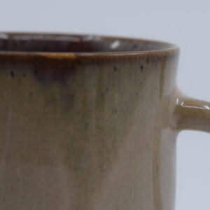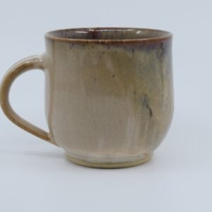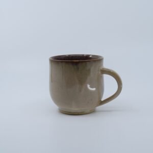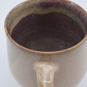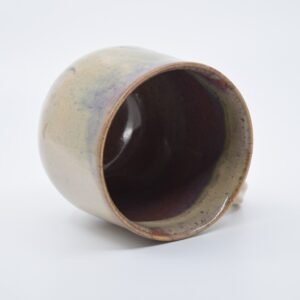 Cream mug with purple interior, made of beige clay with spikes. It is 9 cm high and 8 cm in diameter. Due to the nature of the materials used and the handmade process, sizes and colours may vary slightly. The product is food safe and dishwasher safe.
