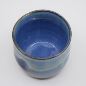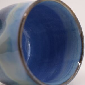 Ergonomically shaped glass made at the potter’s wheel from black clay and glazes inspired by the colours of the sea. It is 8 cm high and 8 cm in diameter. Due to the nature of the materials used and the handmade process, sizes and colours may vary slightly. The product is food safe and dishwasher safe.