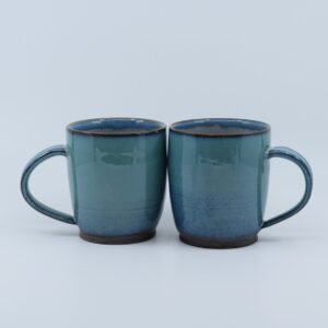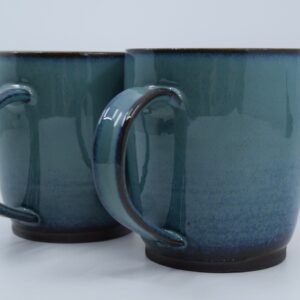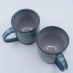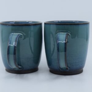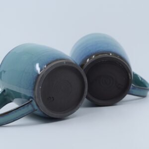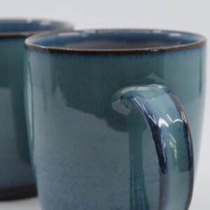 Set consisting of two mugs made of black clay at the potter’s wheel, measuring 9 cm high and 8 cm in diameter. Due to the nature of the materials used and the handmade process, sizes and colours may vary slightly. The product is food safe and dishwasher safe.