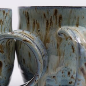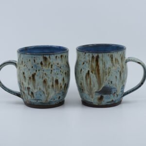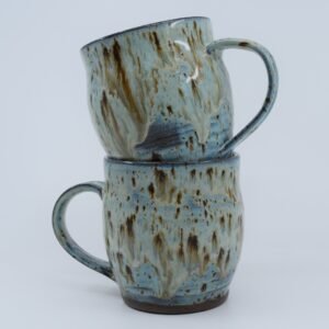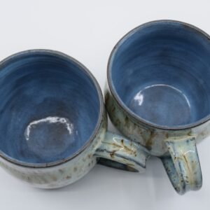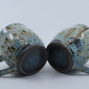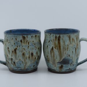Set format din doua cani pentru care am folosit la exterior glazura bleu cu efecte maro. Dimensiunile sumte de 9 cm inaltime si 8 cm diametrul. Datorita naturii materialelor folosite si a procesului handmade, dimensiunile si culorile pot varia usor. Produsul este food safe si poate fi spalat la masina de spalat vase.